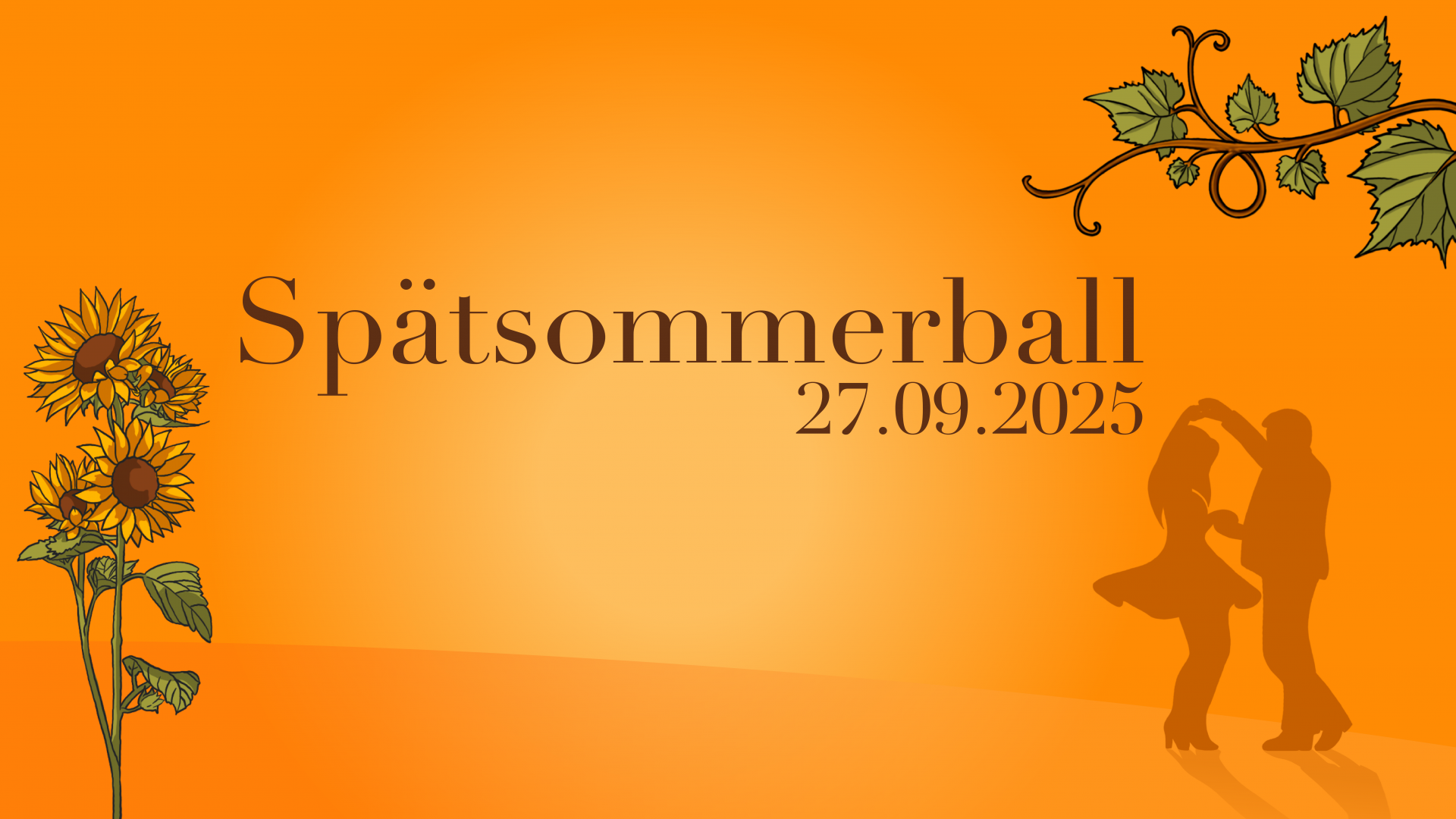 Lasst uns gemeinsam in die Spätsommernacht tanzen! Am Samstag, den 27. September 2025 laden wir euch herzlich zu unserem Spätsommerball ein – ein Abend voller Tanz und Musik.